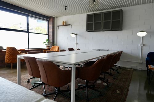 A room built for inspiration seating up to twelve, this completely private loft space at Prospect Studios will have your team buzzing with ideas. Equipped with a projector, whiteboard and just the right amount of creative energy, it's our most versatile space — built to transform effortlessly around your needs.